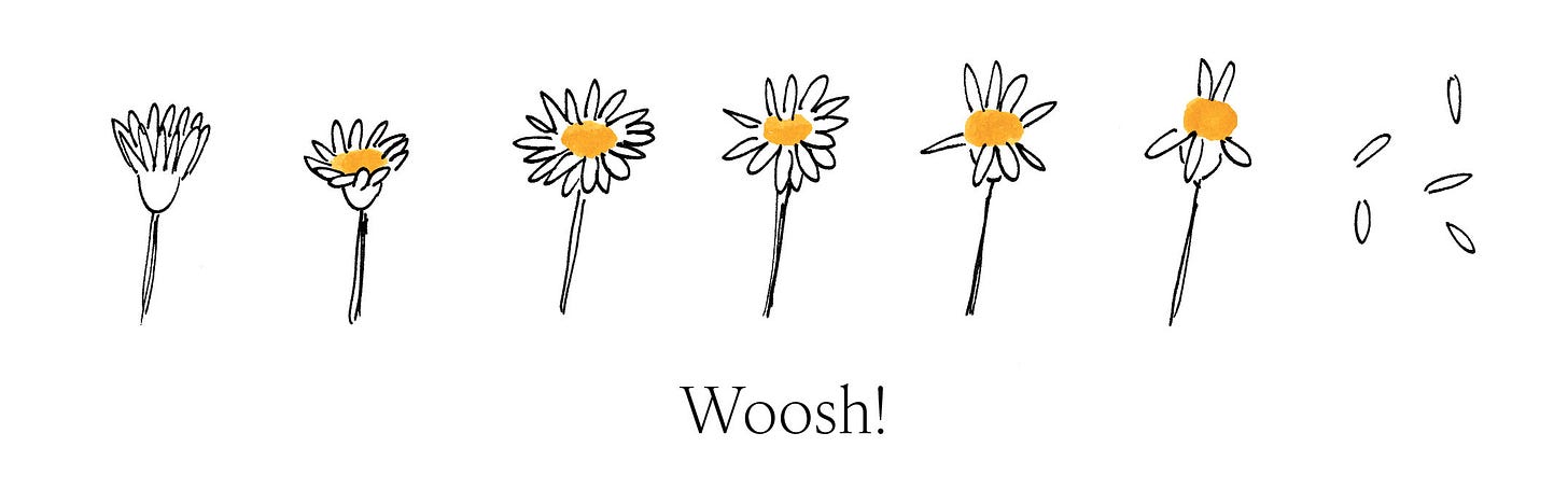 Nel momento in cui inizio a scrivere ci sono 19°, c’è il sole, il cielo è azzurro e nei prati è in atto un’esplosione di margherite. Ho scoperto che disegnarle è super rilassante, quindi ecco qui sotto un mare di margherite.