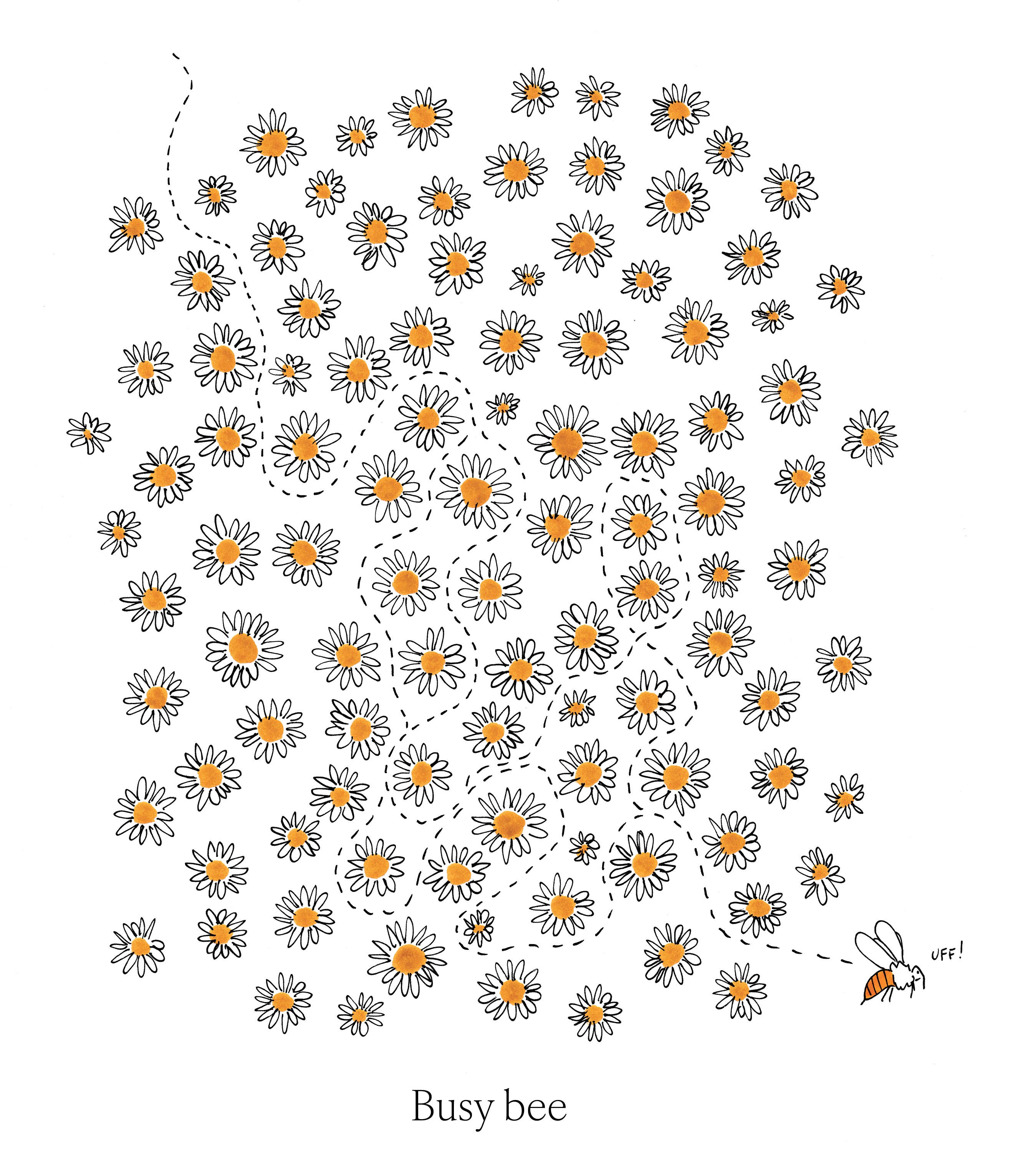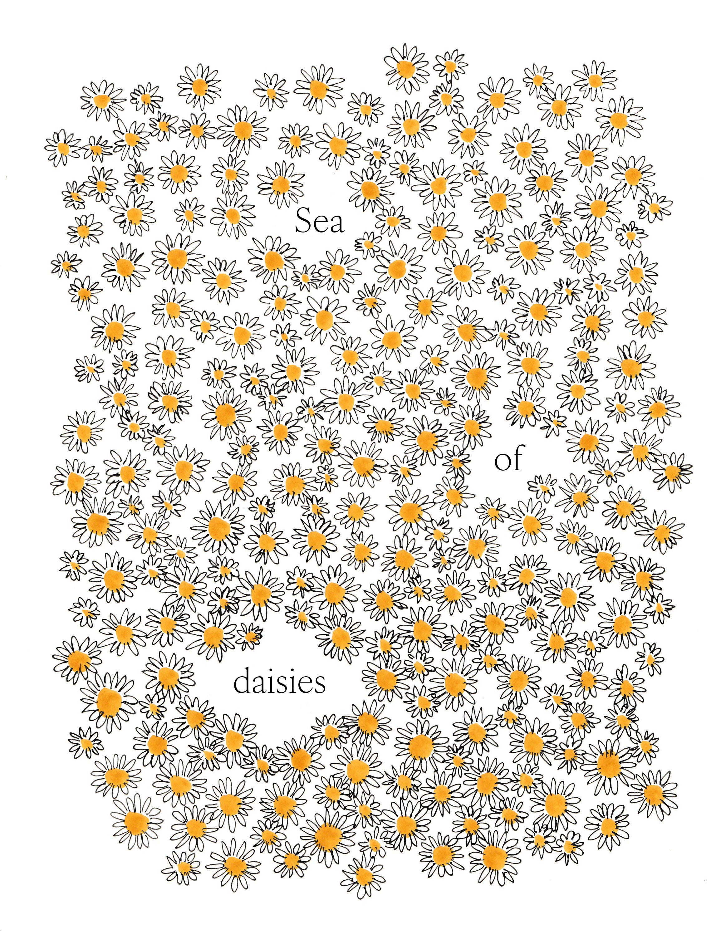 As I write the temperature is 19° Celsius, the sun is up, the sky is blue and in the meadows daisies are blossoming. I found out that drawing them is really relaxing, so here is a sea of daisies.